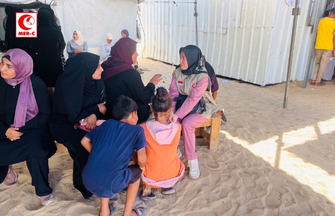 “Kami EMT MER-C ke-10 berkesempatan mengunjungi sebuah klinik di daerah Al-Mawasi milik Kementerian Kesehatan Palestina dan pendanaannya didukung penuh oleh MER-C,” ujar Ketua Tim, dr. Nico Gandha, Sp.D.VE.
