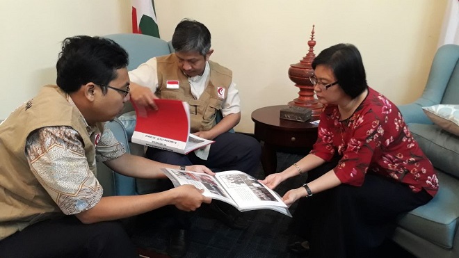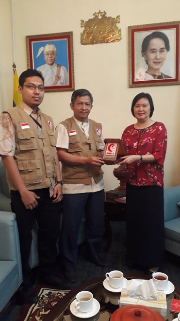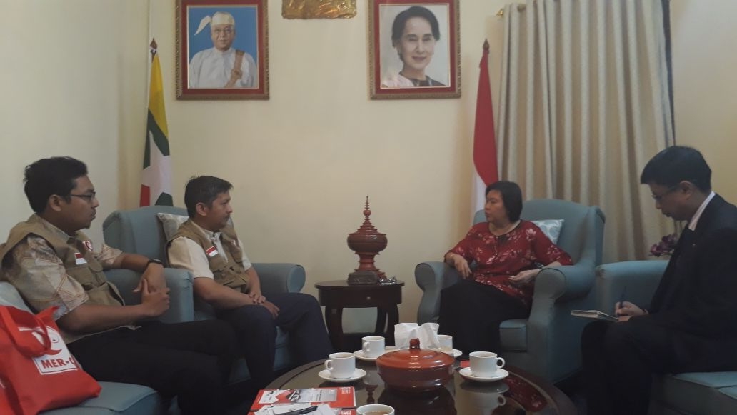 Kamis/23 November 2017, Tim MER-C yang diwakili oleh dr. Yogi Prabowo, SpOT, dr. Hadiki Habib, SpPD dan Rima Manzanaris bertemu dengan Duta Besar Myanmar untuk Indonesia, Mrs. Ei Ei Khin Aye.