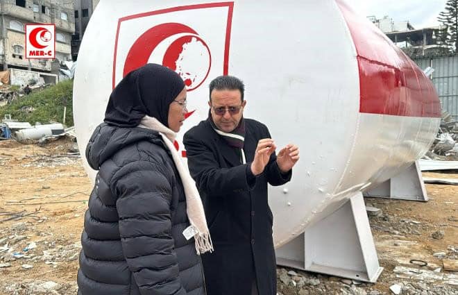 “Sejak agresi terbaru, pasokan listrik di Gaza terputus total, memaksa rumah sakit mengandalkan generator berbahan bakar solar untuk tetap beroperasi. Namun, dengan harga bahan bakar yang semakin mahal dan sulitnya mendapatkan tangki baru, MER-C akhirnya memilih tangki solar bekas berkapasitas besar di daerah Gaza City,” ujarnya.