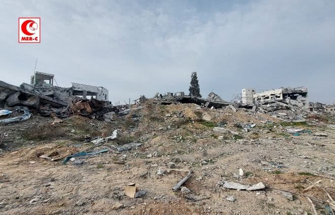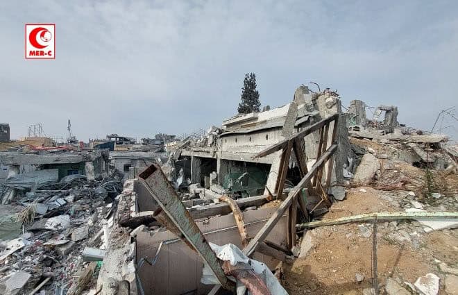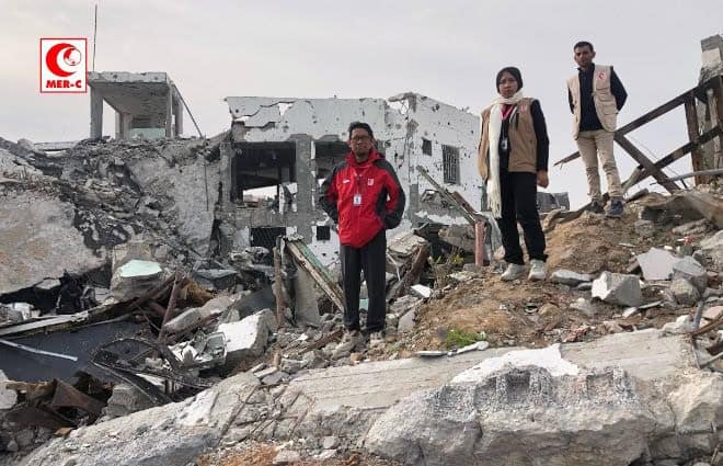 Relawan Emergency Medical Team (EMT) MER-C ke-7 dr. Eka Budhi, SpBS dan Liaison Officer EMT MER-C Marissa Noriti, S.Farm yang melakukan penilaian langsung ke Beit Hanoun pada 3 Februari 2025 mengatakan, infrastruktur termasuk rumah sakit dan jalan hancur total.