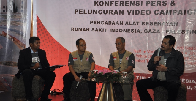 Acara dilanjutkan dengan sesi tanya jawab dengan Presidium MER-C dr Joserizal Jurnalis SpOT, presidium MER-C Ir. Farid Thalib, penanggung jawab pengadaan alat kesehatan RSIndonesia Ahyaudin Sodri, site manager RSIndonesia Edy Abu Fikry dan mechanical electrical manager RSIndonesia Karidi.