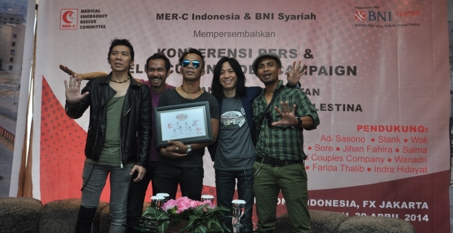 Slank, Salma, Vadi Akbar, dan Hengky Saing hadir untuk menyatakan dukungannya terhadap program pengadaan alat kesehatan RSIndonesia.