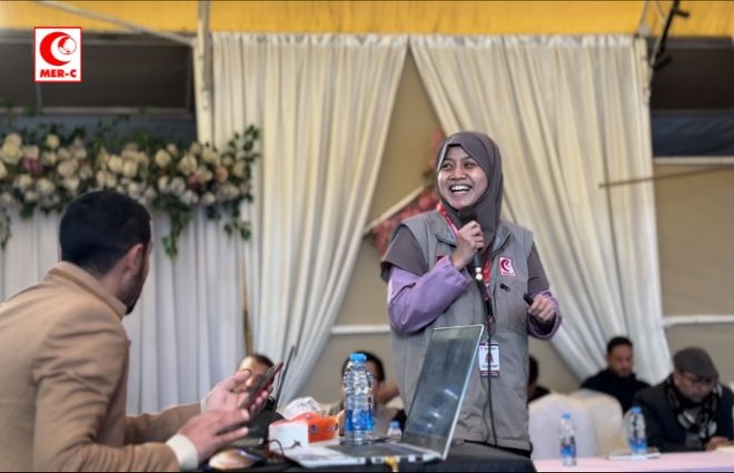 Para peserta interaktif melakukan tanya jawab. Antusias mereka menunjukkan besarnya kebutuhan akan pembaruan ilmu pengetahuan di tengah keterbatasan akses pendidikan medis di Gaza. dr. Yousef Al Farra, Koordinator Klinik GWB menyampaikan, pelatihan ini digelar untuk meningkatkan pengetahuan dan kualitas pelayanan bagi pasien rentan dengan penyakit kronis di Gaza. “Di masa perang ini, yang banyak terdampak adalah mereka yang rentan dengan penyakit kronis. Karena itu, MER-C Indonesia mendukung pelatihan ini untuk meningkatkan pengetahuan dan kualitas pelayanan yang akan diberikan kepada pasien di Klinik Giving Without Borders, guna membantu kelompok rentan dan menangani penyakit mereka,” ujarnya. Ia juga menyampaikan terima kasih kepada MER-C atas terselenggaranya pelatihan ini. MER-C bersama Klinik GWB menggelar tiga pelatihan selama enam hari, mulai 2–7 Februari 2026. Materi pelatihan meliputi sistem respirasi, NCD, serta manajemen dan komunikasi. MER-C berharap dukungan dalam bentuk pelatihan dapat menambah wawasan baik dokter maupun perawat, di tengah minimnya akses pembaruan ilmu pengetahuan di Gaza. Selengkapnya di link ini https://www.instagram.com/reel/DU-EczoE5Xi/?igsh=YmRvaTQ5aDNram40 https://www.facebook.com/share/v/17w3xGBuo8/?mibextid=wwXIfr https://x.com/mercindonesia/status/2024736018734473482?s=46 https://vt.tiktok.com/ZSm5amhKq/ ——————————————— Donation Account: Bank Central Asia (BCA), 686.0153678Bank Mandiri, 124.000.8111.925Bank Syariah Indonesia (BSI), 700.1352.061Bank Mega Syariah (BMS), 1000.209.400Bank Muamalat Indonesia (BMI), 358.000.1720Bank Rakyat Indonesia (BRI), 033.501.0007.60308 Account Name : Medical Emergency Rescue Committee #mercindonesia #relawanmerc #relawangaza #JanganLupakanPalestina #BerdiriBersamaPalestina #StopGenocide #FreePalestina #bantuanpalestina #donasipalestina #emtmercindonesia