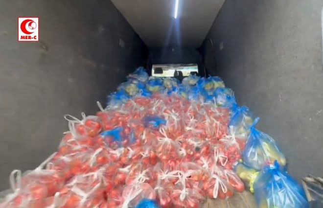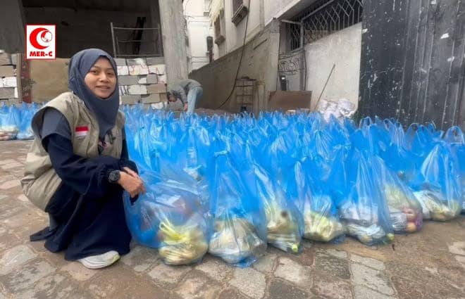Bantuan ini terdiri dari beras, ayam, minyak goreng, kentang, lemon, tomat, dan bawang bombay yang diharapkan dapat memenuhi kebutuhan sekitar 1.200 warga terdampak perang.