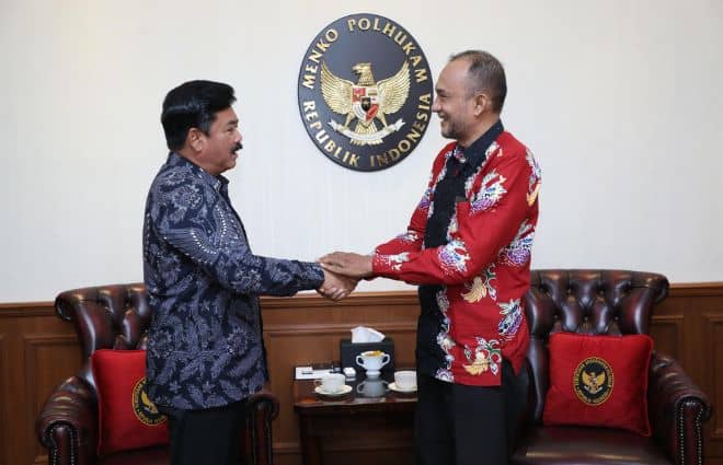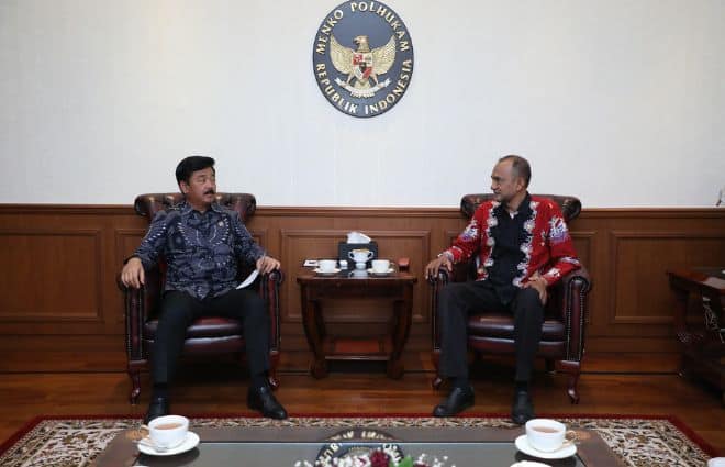Ketua Presidium MER-C dr. Sarbini Abdul Murad bertemu Menteri Koordinator Bidang Politik, Hukum, dan Keamanan (Menkopolhukam), Hadi Tjahjanto, di Kantor Kemenkopolhukam, di Jakarta, Senin (10/6).