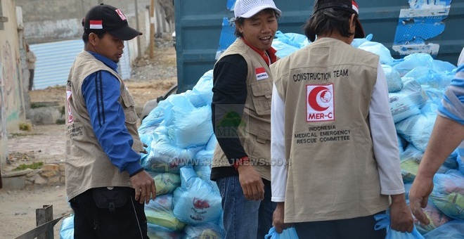 Para Relawan MER-C Sedang Persiapan Pembagian Sembako. FOTO : MINA