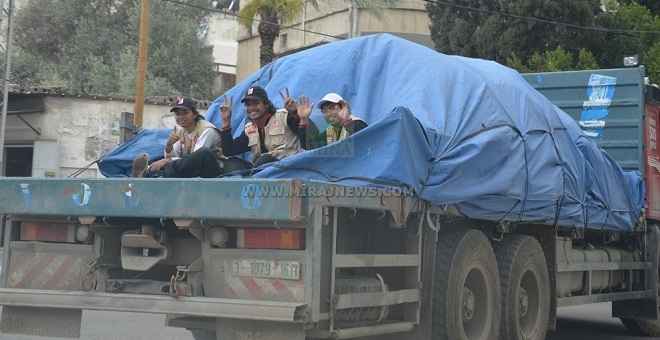 Relawan MER-C diatas Truk bak terbuka yang penuh dengan paket sembako untuk PNS Gaza. foto : MINA