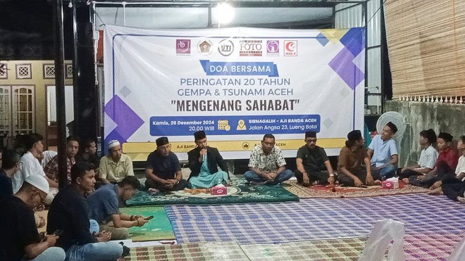 Medical Emergency Rescue Committee (MER-C) dan 4 Organisasi Wartawan yakni Aliansi Jurnalis Independen (AJI), Persatuan Wartawan Indonesia (PWI), Ikatan Jurnalis Televisi Indonesia (IJTI) Aceh, Pewarta Foto Indonesia (PFI) menggelar peringatan 20 tahun gempa dan tsunami Aceh pada Kamis (26/12), dengan tema “Mengenang Sahabat”.