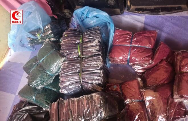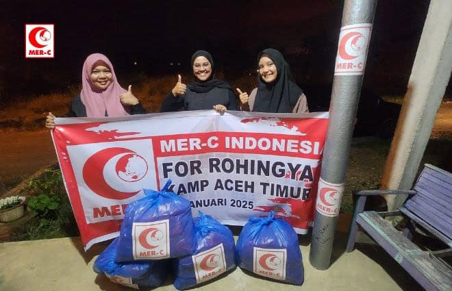 Kemudian pada 21 Januari 2025, MER-C juga memberikan bantuan berupa 78 mukenah dan satu rol terpal alas sholat dengan lebar empat meter untuk pengungsi yang baru tiba beberapa waktu lalu.