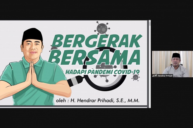 Wali Kota Semarang, Jateng, Hendrar Prihadi, memberikan pemaparan pada Pesantren Kilat Ramadhan 1442 Hijriah bertema “Pesantren Kilat Nasional Strategi Multibudaya Cegah COVID-19” secara daring (online) dan luring (offline) kerja sama kolaboratif Komunitas Wartawan Jabodetabek, Yayasan At-Tawasuth, Portal Berita Serambi Nusantara, dan Pondok Pesantren Al-Fatah, Ciomas-Kabupaten Bogor, Jawa Barat, Ahad (25/4/2021). (FOTO ANTARA//HO-Said Abdullah)
