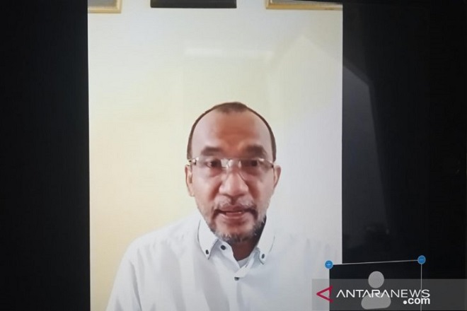 Ahli kesehatan yang juga Ketua Presidium Medical Emergency Rescue Committee (MER-C) Indonesia, dr Sarbini Abdulmurad memberikan pemaparan pada Pesantren Kilat Ramadhan 1442 Hijriah bertema “Pesantren Kilat Nasional Strategi Multibudaya Cegah COVID-19” secara daring (online) dan luring (offline) kerja sama kolaboratif Komunitas Wartawan Jabodetabek, Yayasan At-Tawasuth, Portal Berita Serambi Nusantara, dan Pondok Pesantren Al-Fatah, Ciomas-Kabupaten Bogor, Jawa Barat, Ahad (25/4/2021). (FOTO ANTARA//M Fikri Setiawan)