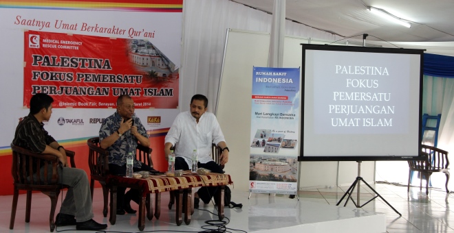 Jakarta, 9/3, Medical Emergency Rescue Committee (MER-C) mengadakan Talkshow bertopik “Palestina Fokus Perjuangan Pemersatu Umat Islam pada acara Islamic Book Fair di Panggung Selasar, Istora Gelora Bung Karno, Senayan, Jakarta. Acara ini menghadirkan narasumber Mantan Menteri Koperasi dan anggota ICMI, Adi Sasono dan Presidium MER-C Dr Joserizal Jurnalis SpOT.
