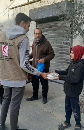 MER-C melalui relawan lokalnya di Jalur Gaza bagian Utara kembali membagikan bantuan makanan siap saji kepada warga di sekitar Rumah Sakit Indonesia di Gaza Utara yang saat ini masih terisolasi.