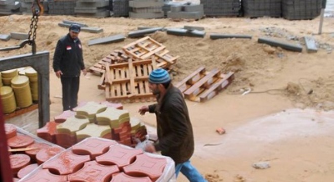 Proses pemasangan paving block pada halaman RS Indonesia, Bayt Lahiya, utara Jalur Gaza, Palestina. (Foto: MER-C/MINA)