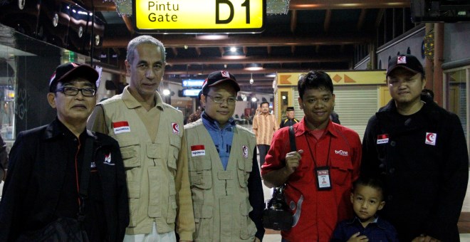 Jakarta – Pada hari ini (17/2) MER-C kembali memberangkatkan tim ke jalur Gaza, Palestina. Tim yang terdiri dari Presidium MER-C Ir. Faried Thalib, Site Manager Rumah Sakit Indonesia (RSI) Ir. Nur Ikhwan Abadi, Medical Technologist Ahyaudin Sodri, didampingi oleh Yoebal Ganesha Rasyid dari Republika dan Subhan Hariadi Putra dari TVOne take off pukul 07.45 WIB menuju Kairo, Mesir, dengan menaiki pesawat Emirates Airlines, sebelum melanjutkan perjalanan mereka menuju jalur Gaza, Palestina.