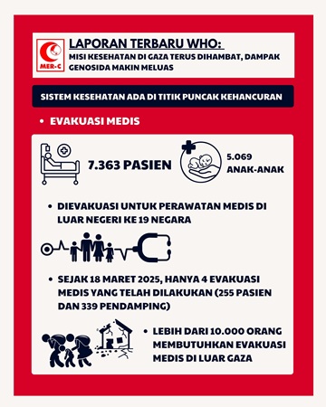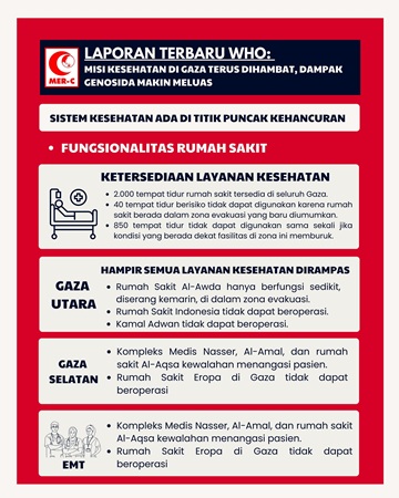 Berdasarkan laporan terbarunya ini, WHO menyerukan gencatan senjata segera, akses kemanusiaan tanpa hambatan ke Gaza dan Tepi Barat, perlindungan terhadap warga sipil dan fasilitas kesehatan, serta evakuasi medis untuk semua pasien kritis yang perlu keluar dari Gaza.