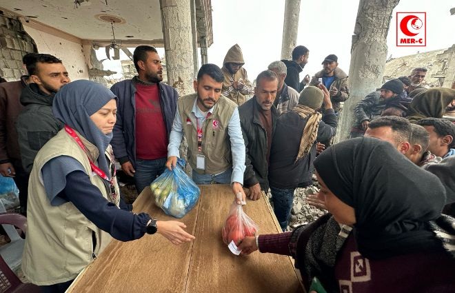 Setiap hari, dua relawan MER-C yang masih bertahan di Jalur Gaza Fikri Rofiul Haq dan Reza Aldilla Kurniawan dibantu staf lokal berupaya untuk mengadakan program makanan siap saji secara rutin bagi lebih dari 1.200 pengungsi.