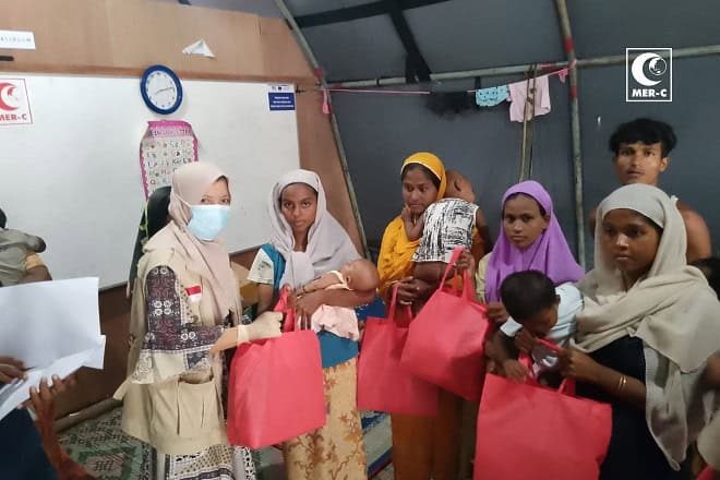 “Project Manager MER-C for Rohingya Ira Hadiati (Relawan MER-C) beserta 1 perawat komunitas, 1 bidan dan 3 tim logistik berkomitmen untuk memberikan layanan kesehatan terbaik, terutama bagi kelompok rentan seperti ibu hamil dan mereka yang berisiko terkena penyakit menular”. Upaya ini diharapkan dapat mengurangi risiko penyakit yang berpotensi menyebar di tengah keterbatasan fasilitas penampungan.