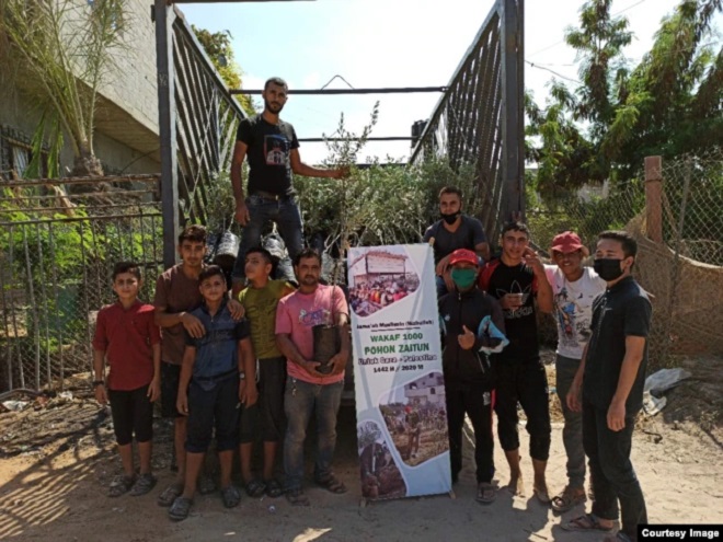 Fikiri (paling kanan) bersama anak-anak dan pemuda Gaza yang akan membantunya menanam pohon zaitun bantuan masyarakat Indonesia. (foto: courtesy)