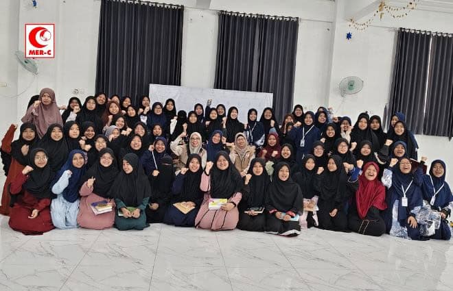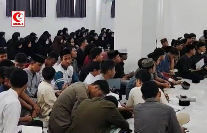 Depok, 7 Maret 2025 – Relawan medis dari Medical Emergency Rescue Committee (MER-C), dr. Regintha Yasmeen, Sp.OG, membagikan pengalaman bertugas di Jalur Gaza dalam acara “Dialog Ringan Akhir Pekan” di Pondok Pesantren At-Taqwa, Depok, Sabtu (8/3).