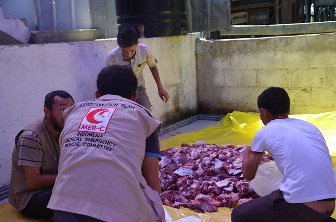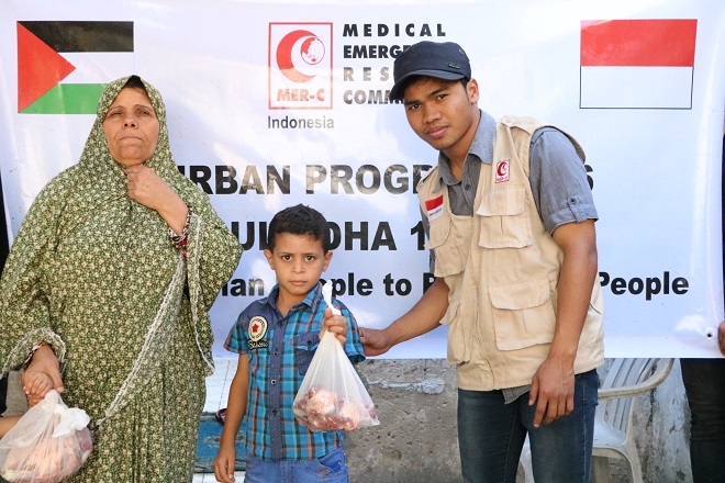 Seperti tahun-tahun sebelumnya, tahun ini MER-C melalui cabangnya di Jalur Gaza (Palestina) kembali menyelenggarakan program qurban di wilayah terblokade ini. Sebanyak 11 ekor domba dan satu ekor sapi disembelih oleh relawan untuk kemudian dagingnya disebarkan secara langsung kepada keluarga-keluarga yang membutuhkan di Jalur Gaza, baik Gaza Utara, Gaza Tengah hingga ke Gaza Selatan. Pelaksanaan qurban dikomandoi oleh perwakilan relawan MER-C di Gaza, Reza Aldilla Kurniawan yang dibantu sejumlah tenaga lokal.