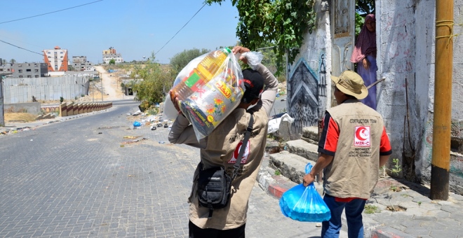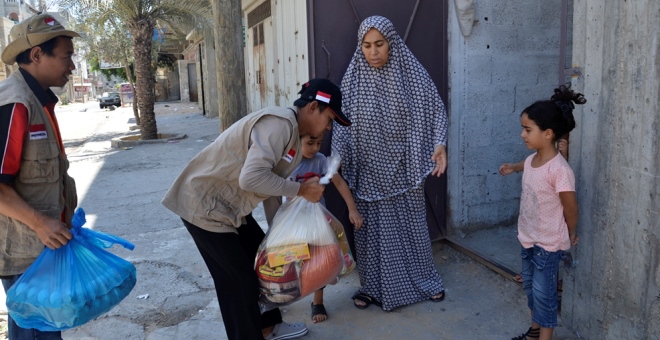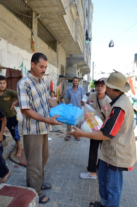 Gaza – Relawan Medical Emergency Rescue Committee (MER-C) di jalur Gaza menyalurkan bantuan dari rakyat Indonesia kepada warga gaza secara langsung pada selasa 15/7. Ditengah serangan israel yang masih berlangsung relawan mendatangi rumah-rumah warga Gaza yang sedang membutuhkan dengan memberikan paket makanan pokok, demikian Ketua MER-C Cabang Gaza, Muqarrabin Al Fikri menyatakan.