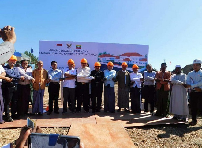 Rumah Sakit Indonesia yang didirikan atas kerjasama Medical Emergency Rescue Committee (MER-C), Palang Merah Indonesia (PMI) dan Perwakilan Umat Buddha Indonesia (WALUBI) mulai dibangun pada November 2017. Hal ini ditandai dengan peletakan batu pertama atau ground breaking bangunan utama pada 19 November 2017. Acara tersebut dihadiri oleh Duta Besar Republik Indonesia untuk Republik Myanmar, Dirjen Kementerian Kesehatan Myanmar, Secretary of State Rakhine, Perwakilan MER-C serta warga sekitar dari komunitas Budha dan komunitas Muslim.