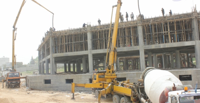 Gaza Palestina: RS Indonesia (RSI) Gaza, kembali memecahkan rekor pengecoran terbesar yang pernah terjadi di Gaza. Beton sejumlah 500 m3 (meter cubic) yang dimuntahkan dalam satu waktu selama 8 jam proses pengecoran lantai 3 RSI pada Selasa (20/03) ini menjadikannya sebagai pengecoran terbesar yang pernah terjadi di Gaza. Jika di Indonesia atau negara lainnya, pengecoran sejumlah tersebut terbilang biasa, namun berbeda dengan Gaza, negeri yang terblokade ini belum pernah melakukan pengecoran sebesar itu.