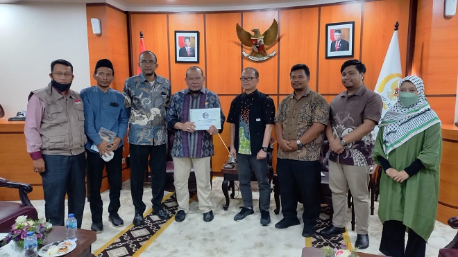 Ketua Presidium MER-C, Sarbini Abdul Murad meminta dukungan Ketua DPD RI AA LaNyalla Mahmud Mattalitti agar pemerintah menolak kedatangan timnas U-20 Israel.