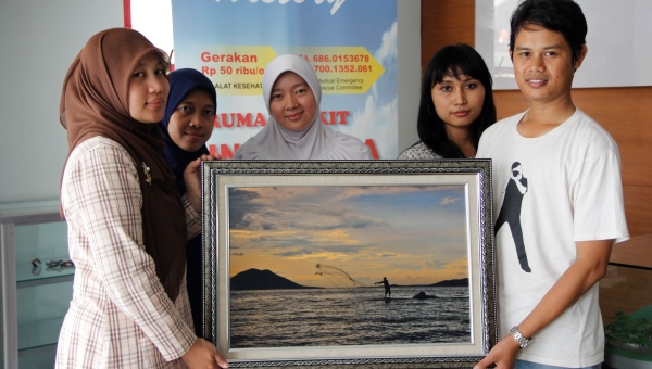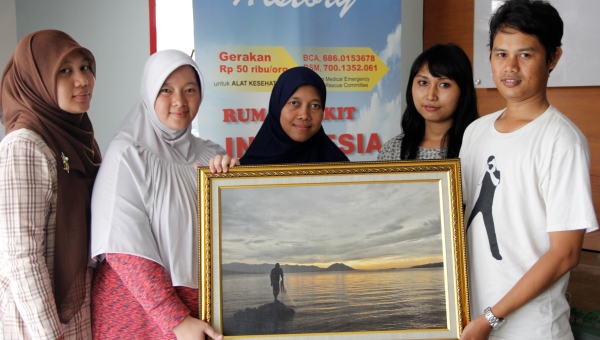 Dua buah foto berukuran 40 x 60 cm itu kemudian diserahterimakan oleh Husni kepada staf MER-C bagian penerimaan donasi. “Mudah-mudahan foto ini bisa dilelang oleh MER-C dan hasil lelangnya bisa ikut membantu program pembangunan RS Indonesia,” harapnya.